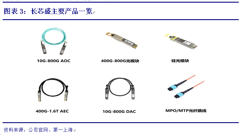 公司从电信市场PLC光分路器和光纤接入PON产品起家,通过收购长芯盛(最新持股60.45%),实现对数据中心、消费及工业连接器领域的覆盖,产品包括光模块、有源光缆AOC、无源光缆MPO,以及有源/无源铜缆产品DAC/AEC等产品系列。