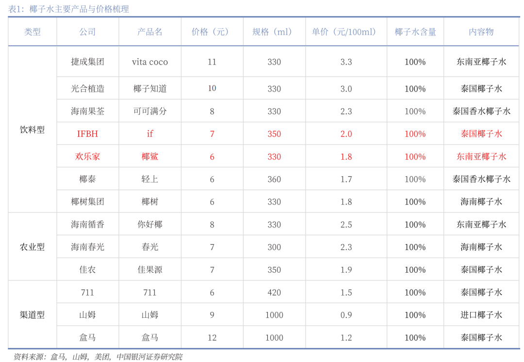 ▲椰子水主要产品的价格梳理,图源银河证券研报