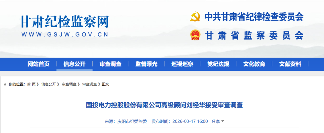 国投电力控股股份有限公司高级顾问刘经华涉嫌严重违纪违法,目前正接受中央纪委国家监委驻国家开发投资集团有限公司纪检监察组纪律审查和甘肃省庆阳市监察委员会监察调查。