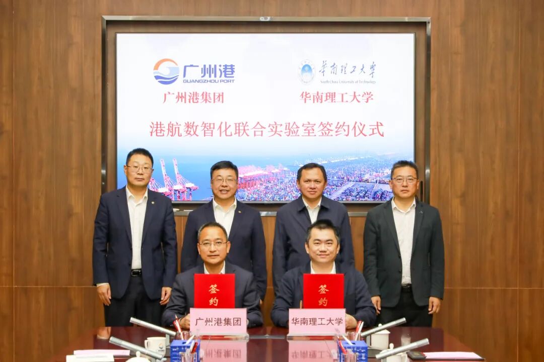 在场领导共同为“广州港-华南理工大学港航数智化联合实验室”揭牌。双方相关部门负责人参加活动。