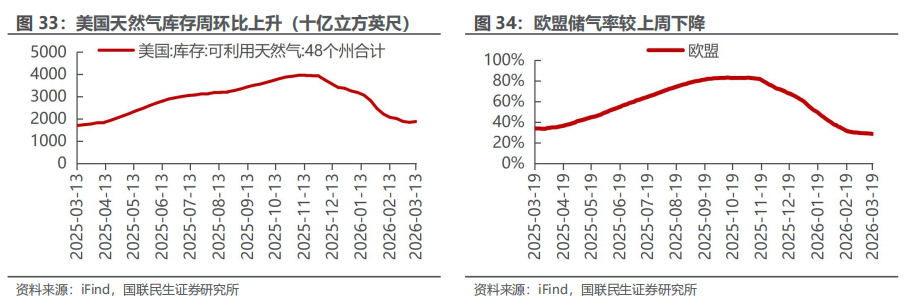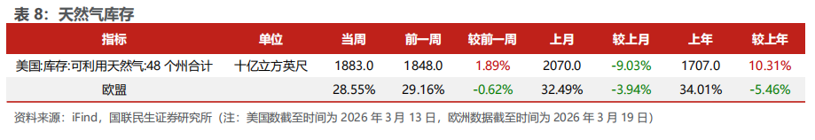 欧盟储气率下降。截至3月19日,欧盟储气率为28.55%,较上周-0.62pct。