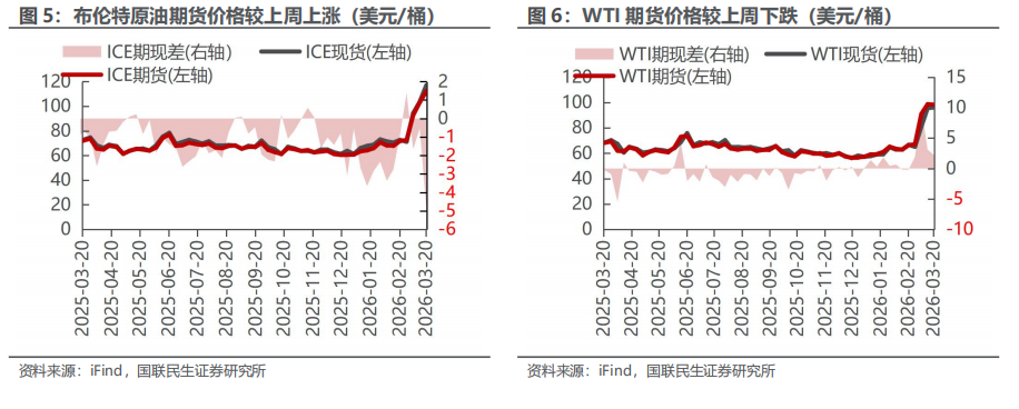 中东局势直接牵连能源生产设施,关注美国下一步行动。由于美伊的复杂局势,本周油价振幅较大。一方面,特朗普表示,因对伊朗战事需要,希望将访华推迟1个月左右;另一方面,中东冲突已升级到能源设施上。3月16日,阿联酋Shah天然气田因无人机袭击引发火灾、导致作业暂停,关键石油港口富查伊拉港也遭到伊朗无人机和导弹袭击,该气田由阿布扎比国家石油公司与美国西方石油公司的合资企业运营,伊朗军方警告称,由于美国军事力量存在于民用设施内,富查伊拉港以及阿联酋的杰贝阿里港和哈利法港已成为"合法目标"。3月18日,伊朗总统表示,国家最高安全委员会秘书、前议长拉里贾尼遇难;同日,以色列袭击世界最大气田——伊朗南帕尔斯气田,该气田由伊朗与卡塔尔共同开发;随后伊朗宣布将卡塔尔、沙特和阿联酋的多处核心能源设施列入打击清单。3月19日晚,卡塔尔能源部长表示,全球最大LNG枢纽近17%的产能在过去一天里被破坏,相关维修将导致1280万吨/年LNG产能停摆,持续时间为3至5年,其年产能约占全球LNG总供应的20%,出口主要流向欧洲与亚洲市场,此外,卡塔尔的凝析油出口预计将下降约24%、LPG下降13%、氦气产量下降14%;另外,IEA也表示,从海湾地区恢复石油和天然气的供应可能需要长达六个月的时间。尽管美国陆续发布与俄油、伊朗油品有关的有条件的制裁许可,但目前美伊冲突的根本问题仍未解决,我们认为,油价或持续维持100美元/桶以上,且具备持续上涨的空间。另外,特朗普考虑冒险夺取哈尔克岛、即伊朗的石油出口枢纽,若相关举措落地,中东战事烈度或进一步升级。