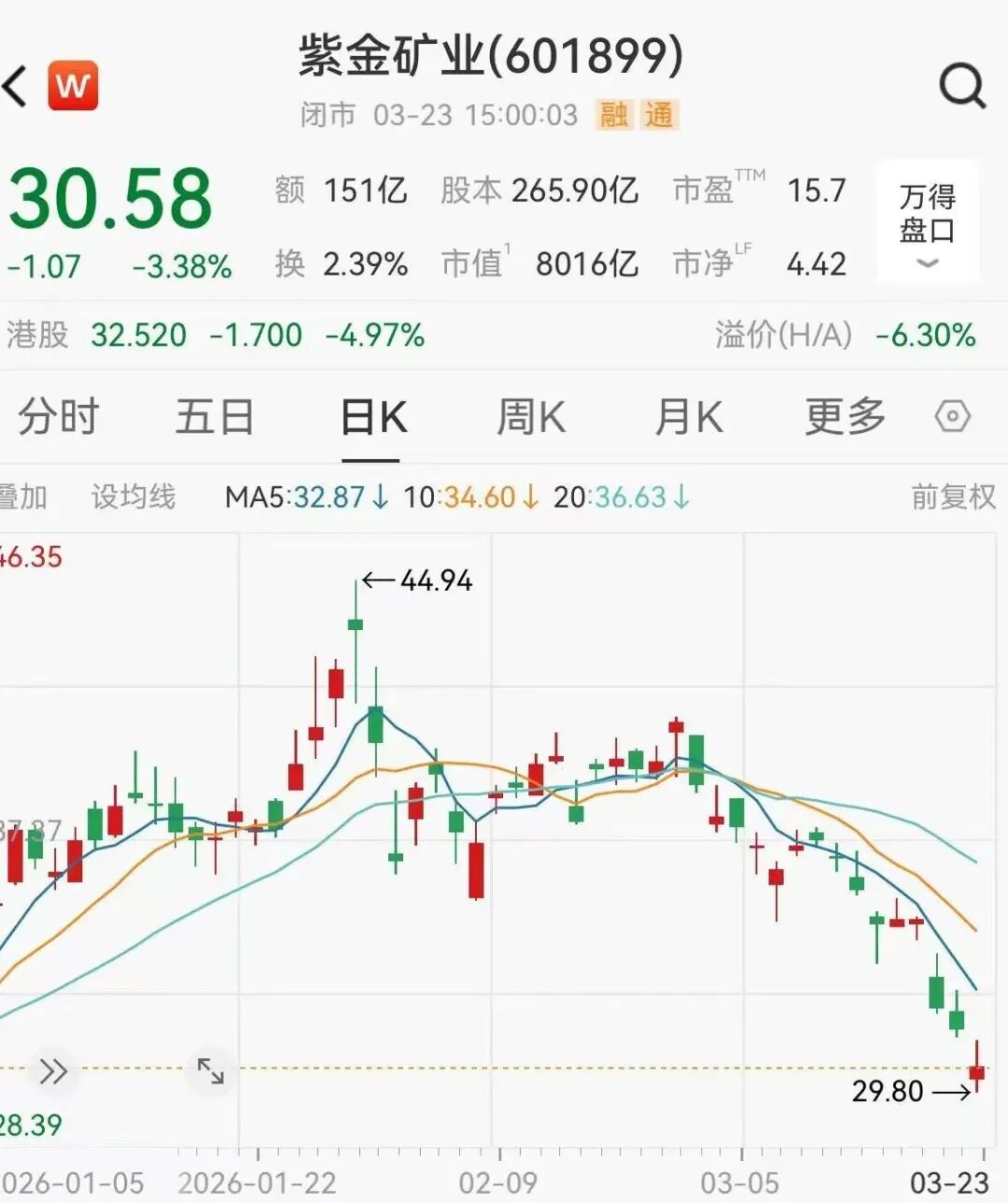截至3月23日收盘,紫金矿业报30.58元/股,市值超过8000亿元;赤峰黄金报36.74元/股,最新市值677亿元。