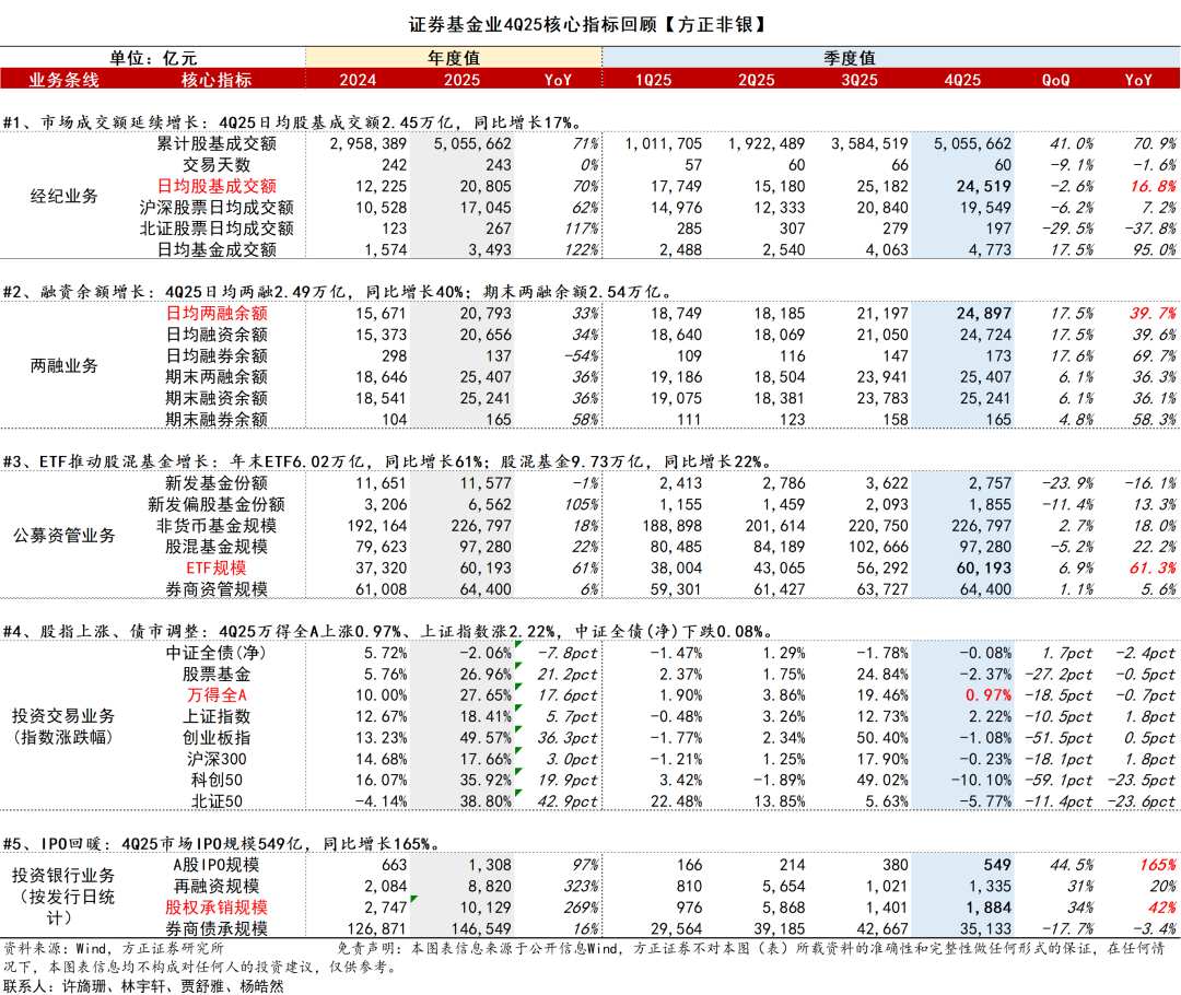 证券基金业4Q25核心指标回顾