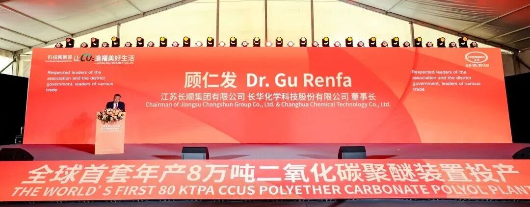 长华化学董事长顾仁发在投产仪式上强调,这套工业化装置的投产,是企业乃至行业实现三大核心跨越的重要标志:一是实现全球领跑,自主定义了二氧化碳聚醚领域的工业化生产标准,抢占了绿色化工新材料的行业制高点;二是完成从被动减碳到主动用碳的理念与技术双重升级,开创了二氧化碳资源化高效利用的全新产业赛道;三是凭借自主绿色科技实力,深度参与全球化工产业重构,彰显中国化工企业的创新底气与责任担当。