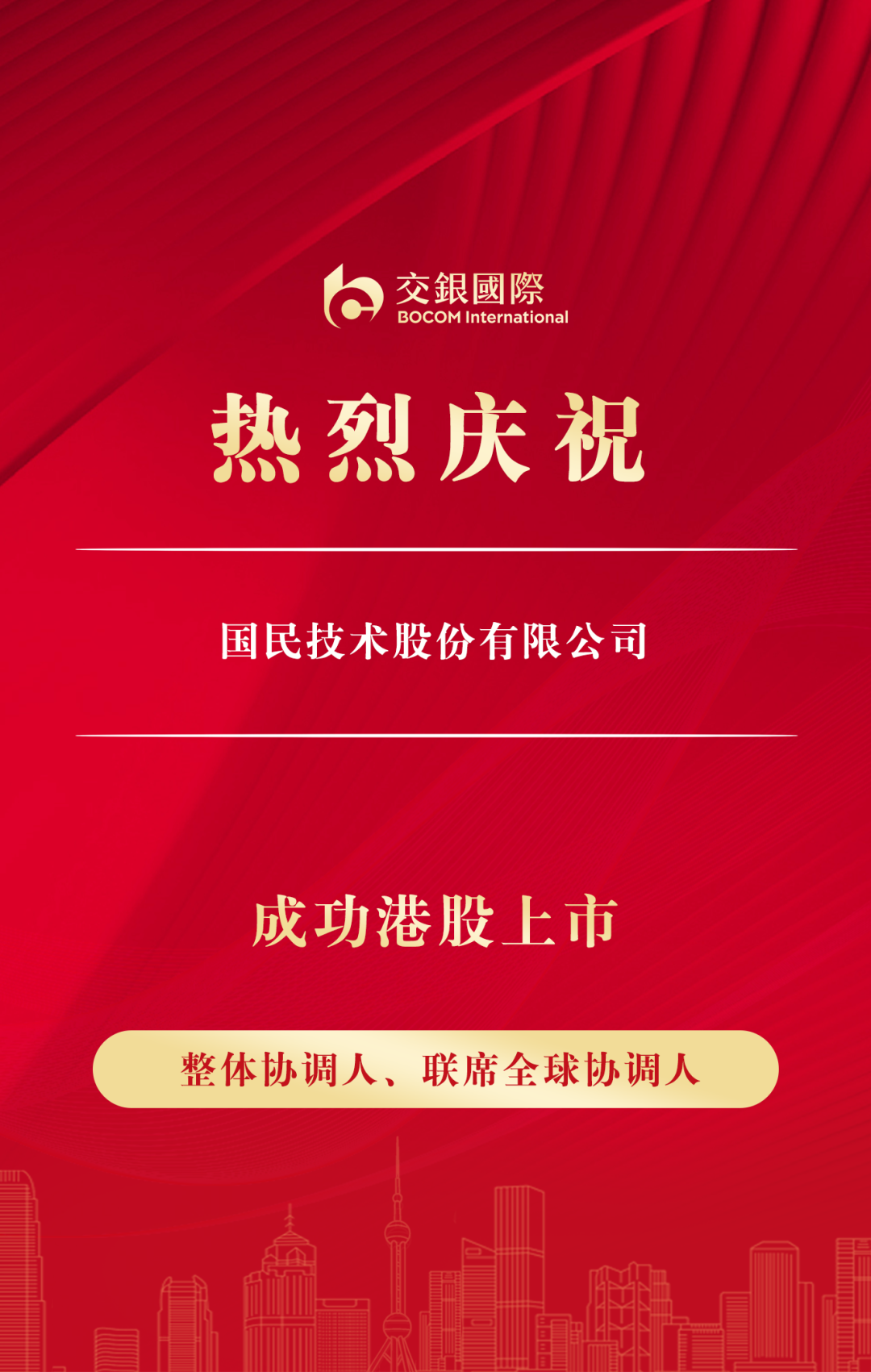 作为本次国民技术港股上市的重要承销机构,交银国际深度参与发行定价和投资者拓展等各个环节,为发行人与投资者搭建起高效畅通的沟通桥梁。交银国际依托交通银行的集团协同优势、全球化的投资者关系网络,精准对接长线基金和产业资本,最终助力国民技术顺利登陆港交所,成功实现全球化融资与品牌国际提升的双重目标。