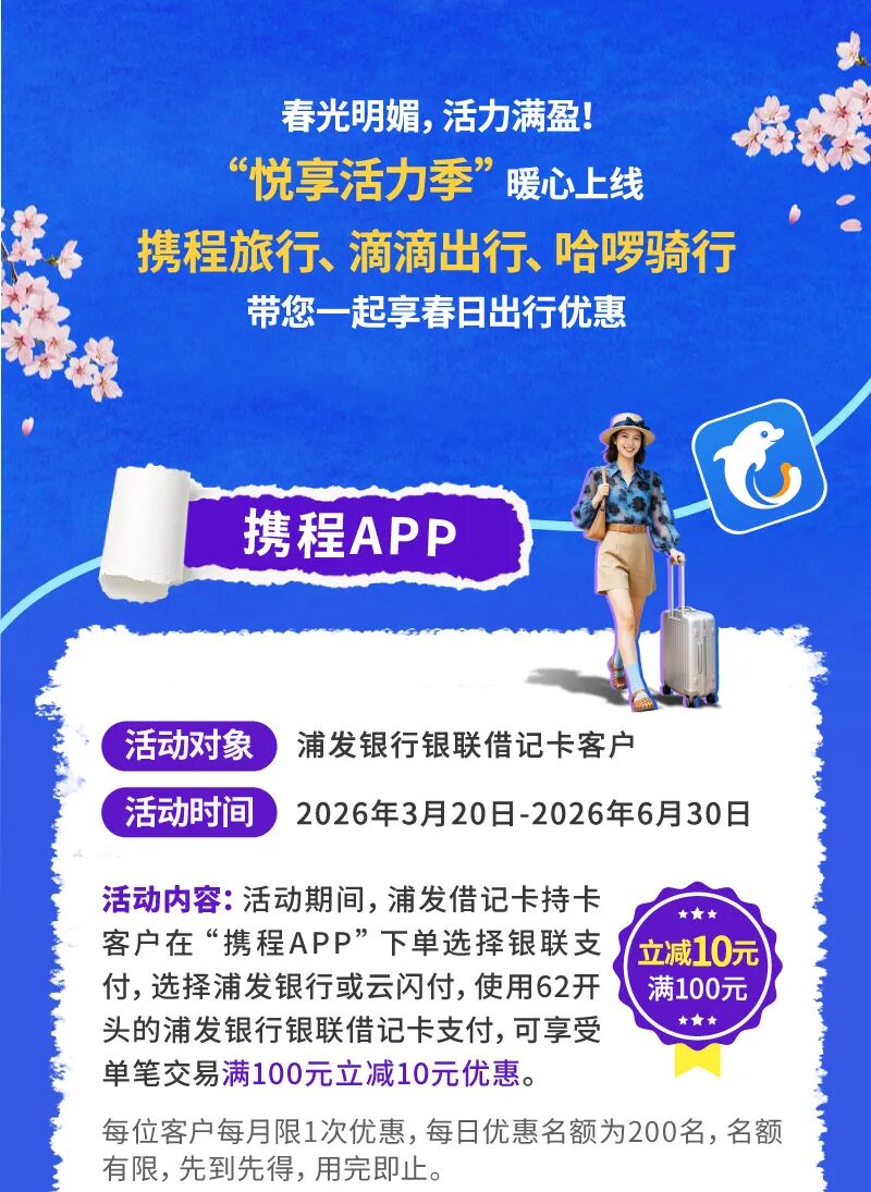 悦享活力季 | 春日出游,浦发送上出行礼包!