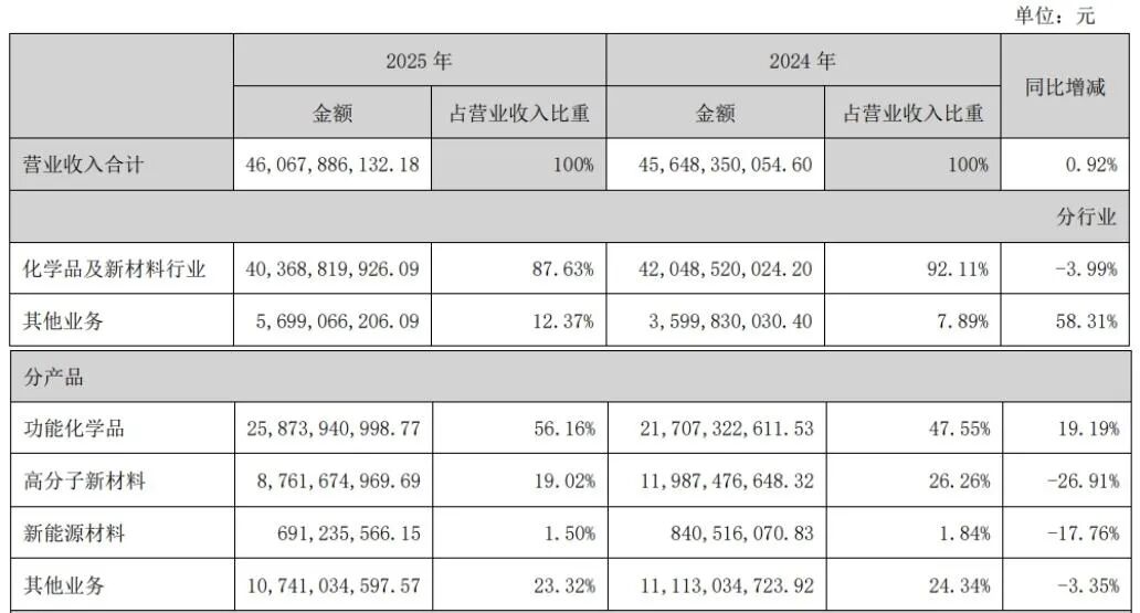 总体来看,虽然高分子新材料板块短期承压,但功能化学品的强劲增长和新能源材料的技术突破,为公司整体业绩提供了有力支撑。