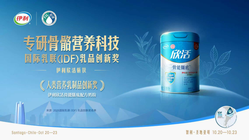 在骨骼肌肉健康领域,伊利欣活骨能膳底配方奶粉以“骨关肌三维一体+东方食养”理念为核心,每100g含1500mg高钙,搭配维生素D与初乳碱性蛋白CBP强化骨密度,添加透明质酸钠支持关节养护,融入杜仲叶粉、黄精粉两味药食同源成分,与北京同仁堂联合共创,2025年荣获国际乳联世界乳业峰会“人类营养乳制品创新奖”。