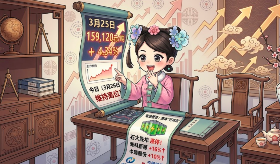 3月25日:盘中暴力拉升,直接冲破了 16万元/吨 的心理大关!主力合约收报 159,120元/吨,单日猛涨 4.34%,走出一波强势的“连阳”行情。