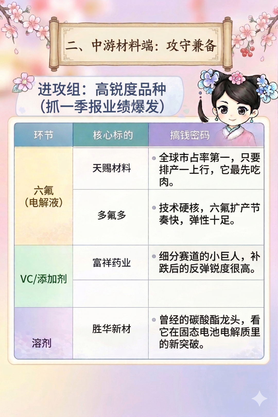 溶剂的胜华新材:曾经的碳酸酯龙头,现在的看点在于它在固态电池电解质里的新动作。如果技术突破,它就是从传统材料跨越到黑科技的典型。