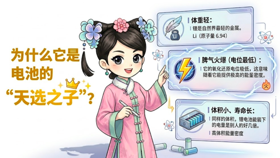 脾气火爆(电位最低):它的氧化还原电位极低,这意味着它能提供极高的能量密度。