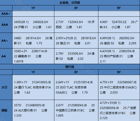 2026/3/27信用发行结果