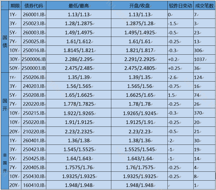 今日公司债企业债交投一般,收益变动不大,需求集中在2-5年AAA品种,收盘成交在估值附近。银行债交投一般,收益变动不大,收盘成交在估值附近。