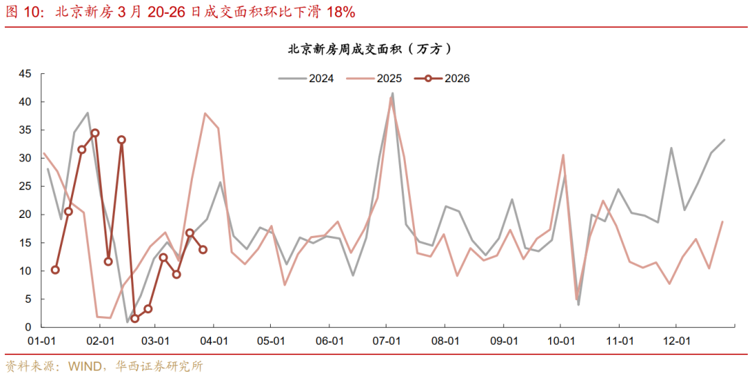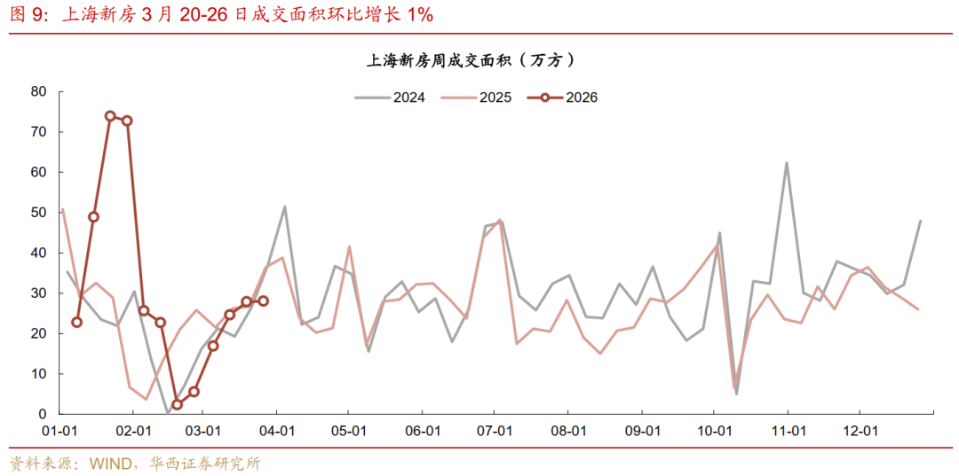 对比未出政策的北京、深圳,为剔除春节影响,统一对比春节后29天(26年2月26日-3月26日与25年2月7日-3月7日)。上海领先北京和深圳,上海成交面积同比增长20%,而北京、深圳同比增幅分别为10%、3%。上海成交套数同比增长23%,而北京、深圳同比增幅分别为15%、14%。