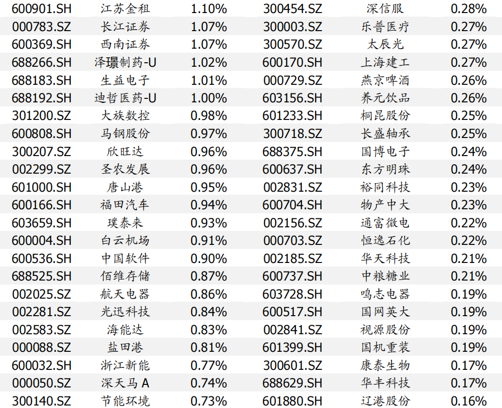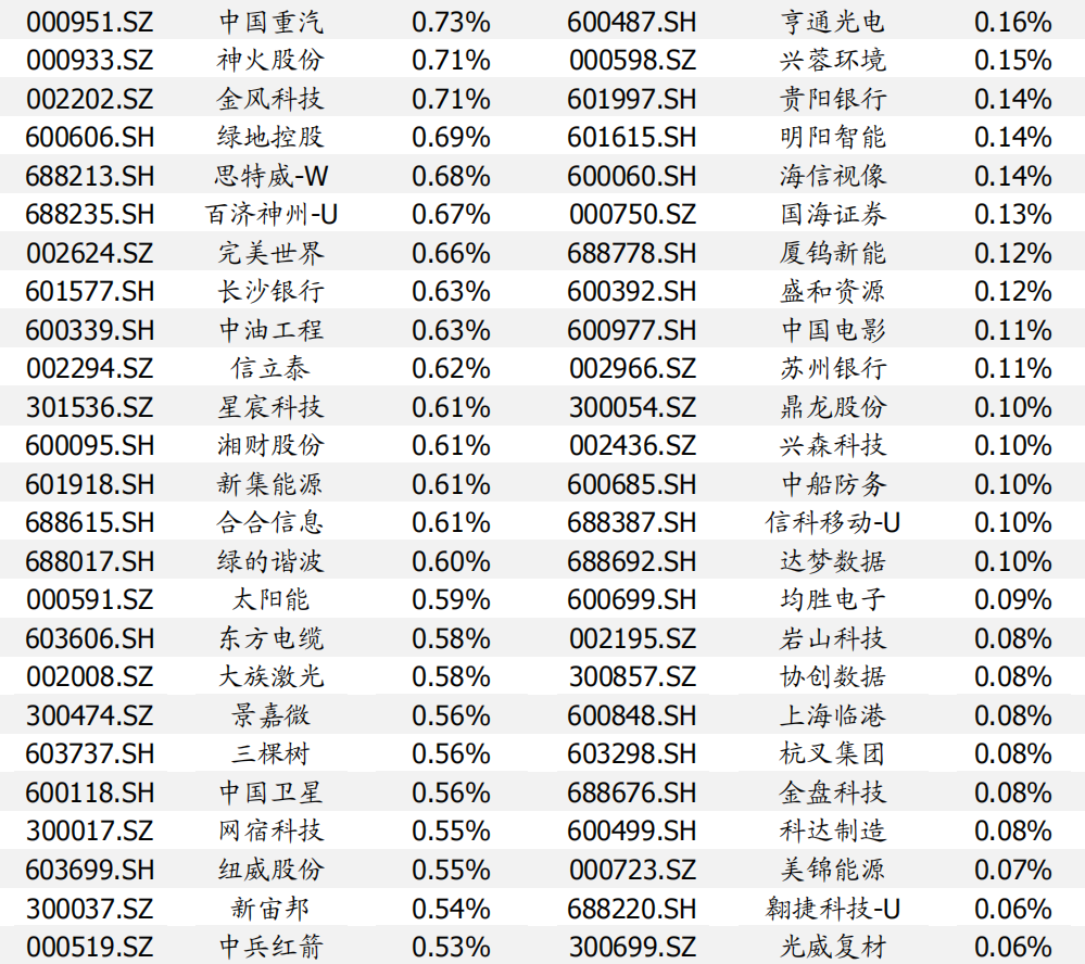 根据策略模型,组合持仓如下: