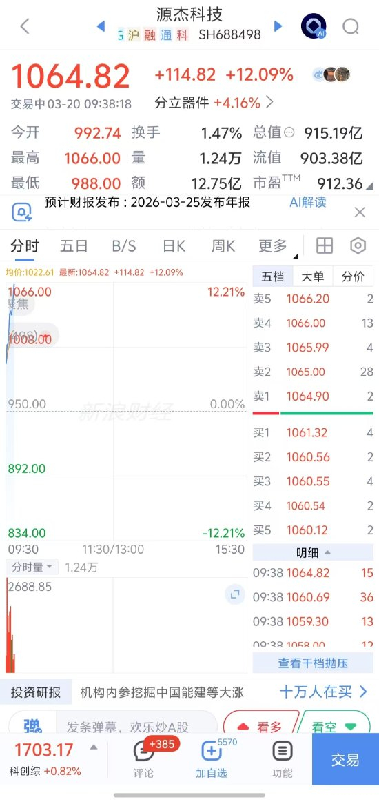 CPO概念人气股源杰科技股价突破千元大关,续创历史新高,成为A股史上第八只“千元股”。数据显示,该公司股价在过去一年内(自2025年3月20日起)累计涨幅已接近690%。在此之前,贵州茅台、石头科技等七家公司股价曾触及或维持在千元以上。