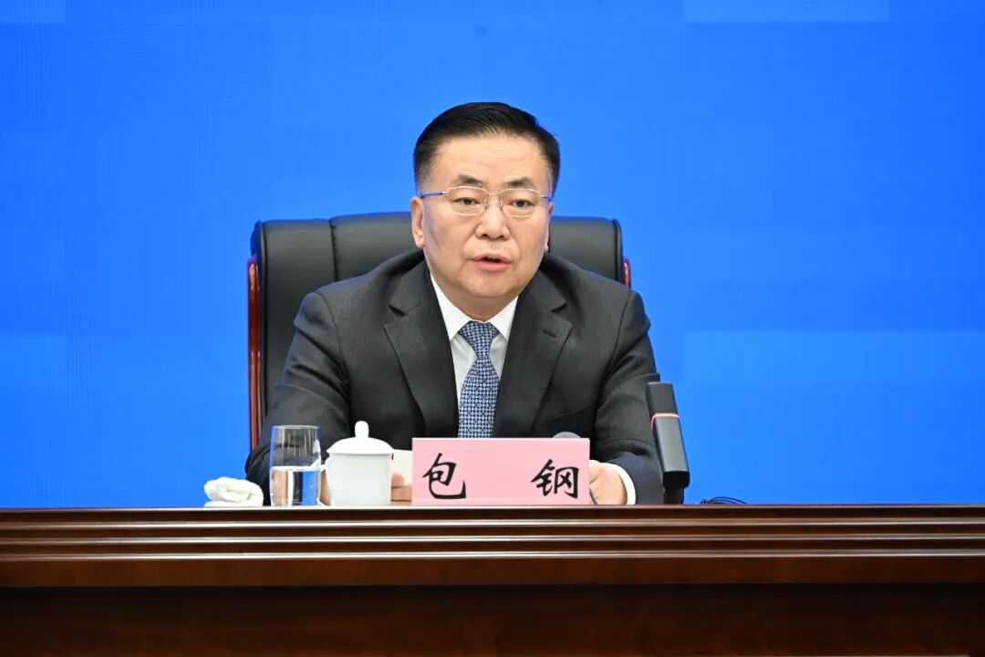 4月21日上午,开局起步“十五五”——在新征程上奋力书写中国式现代化内蒙古新篇章专题新闻发布会上,自治区党委副书记、自治区人民政府主席包钢解读了《内蒙古自治区国民经济和社会发展第十五个五年规划纲要》。 草原云·内蒙古新闻网记者 韩卿立 摄