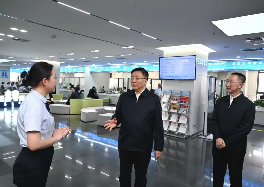 4月23日,包钢来到自治区政务服务中心调研。在自治区本级服务大厅,他详细了解“高效办成一件事”“企业服务”等窗口工作情况。草原云·内蒙古新闻网记者 韩卿立 摄