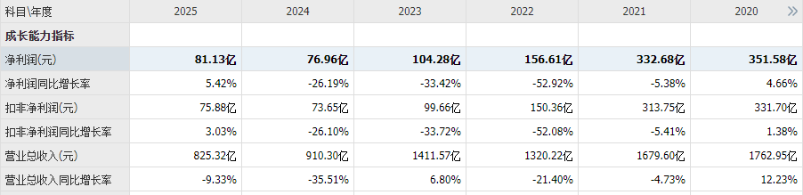 2026年3月25日海螺水泥公布了2025年经营业绩:营收825.32亿同比下降9.33%,净利润81.13亿同比增长5.42%,其中第四季度营收212.34亿同比下降7.19%,净利润18.09亿同比下降27.59%;