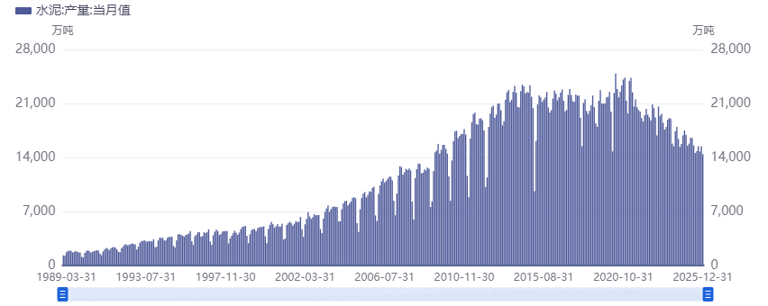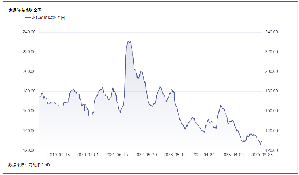 由于需求大幅收缩,2025年水泥产量16.93亿同比下降6.9%,创出2010年以来新低,同样水泥价格指数也是处于震荡下跌之中。