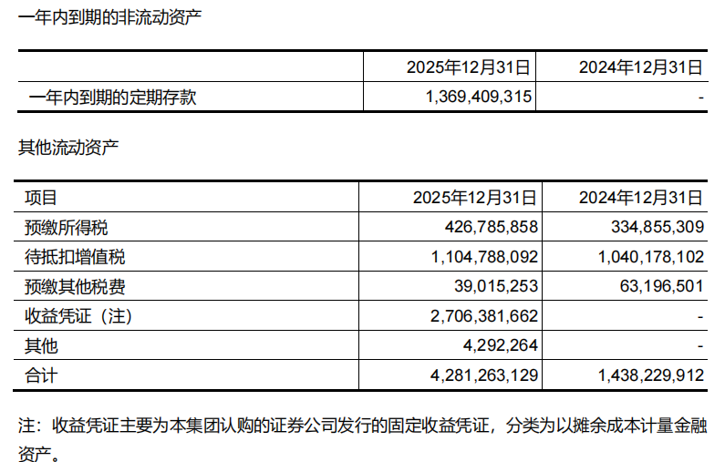 2025年公司账上类现金共906亿(货币资金503亿+交易性金融资产129亿+应收票据58亿+应收款项融资15亿+一年内到期的非流动资产14亿+其他流动资产里的收益凭证27亿+其他非流动资产里的定期存款160亿)占总资产35.4%(2560亿),公司账上类现金非常充裕。