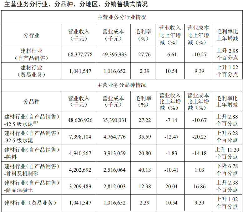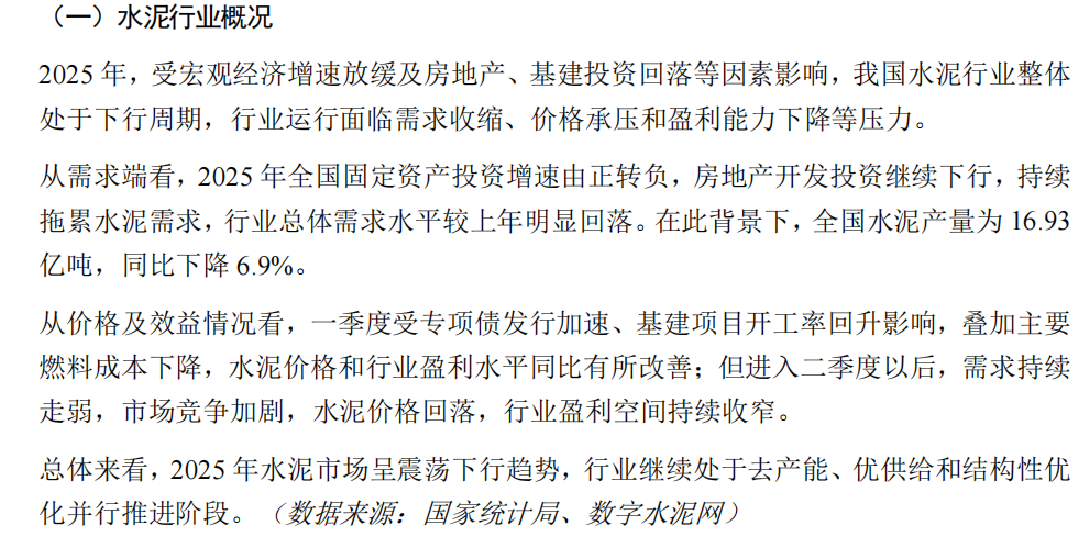 在这一年整个水泥行业依旧处于下行周期里,行业运行面临需求收缩、价格承压和盈利能力下降等压力。