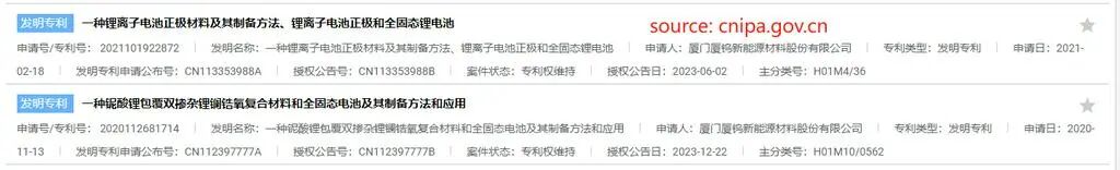 厦钨新能固态电解质专利布局