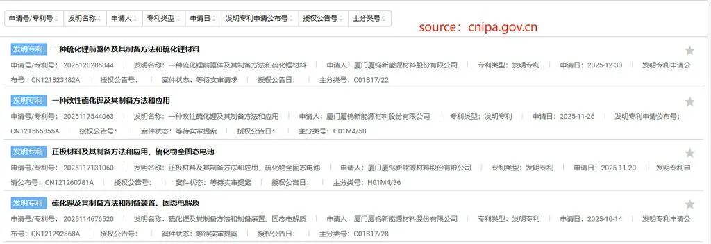 2026年01月:硫化锂相关专利正式公布,高纯度硫化锂合成工艺获专利保护
