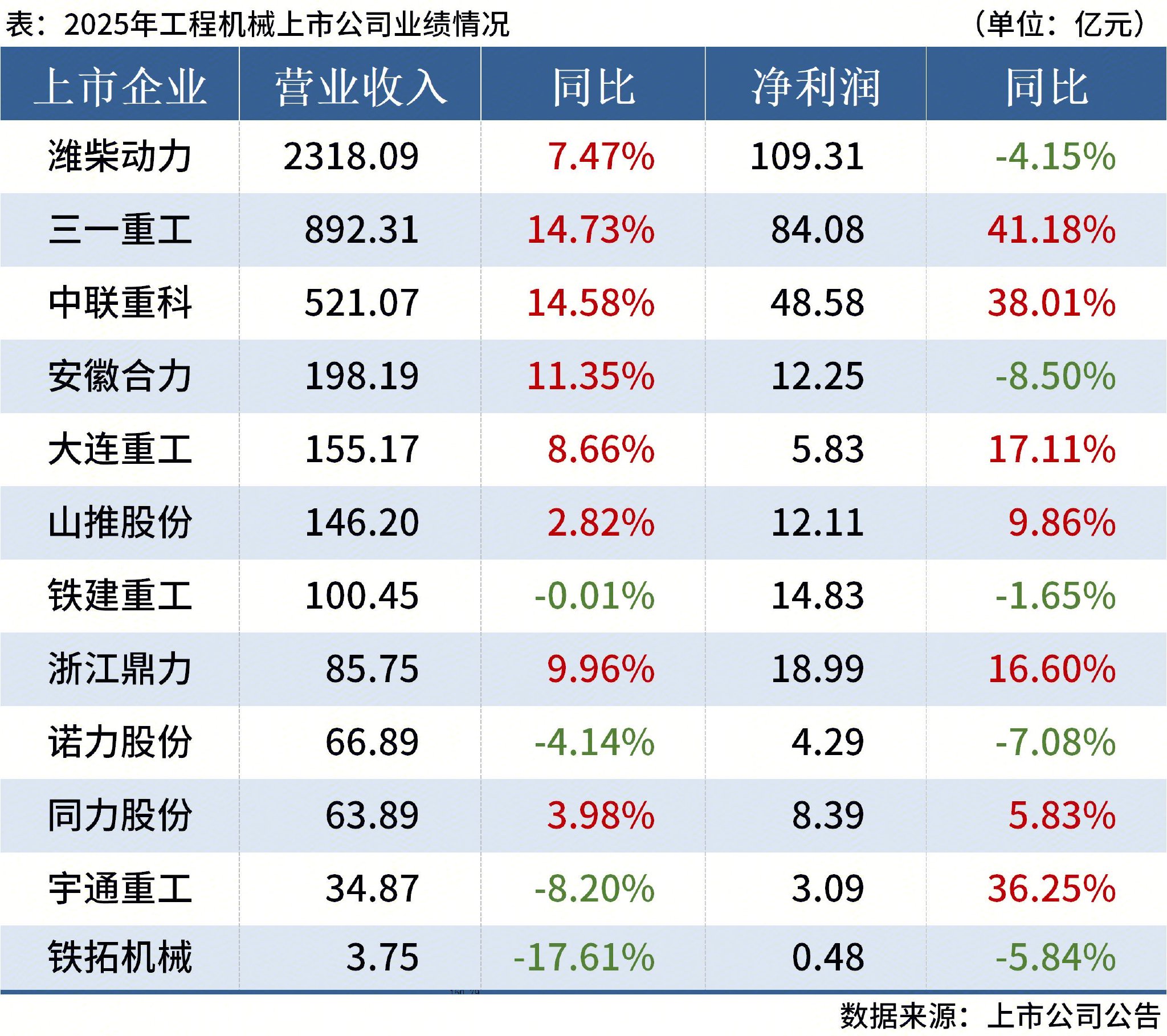 据Mysteel不完全统计,截至4月17日,共有12家工程机械行业上市企业公布了2025年度业绩报告。