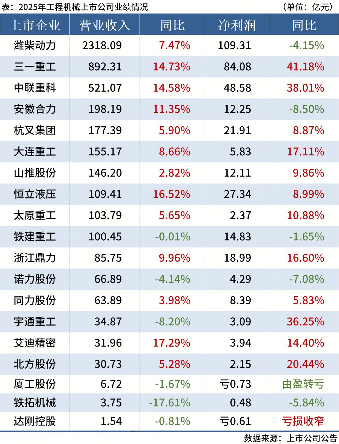 据Mysteel不完全统计,截至4月24日,共有19家工程机械行业上市企业公布了2025年度业绩报告。