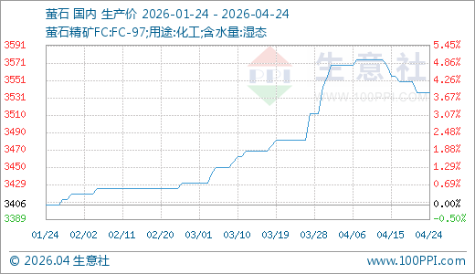 04月24日萤石3537.50元/吨 60天上涨3.28%