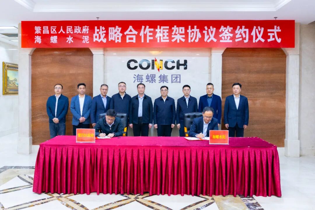 2026年4月13日,海螺水泥与繁昌区人民政府战略合作框架协议签约仪式在集团总部举行。繁昌区委书记汪敏,区委副书记、区长周伟,海螺集团党委副书记、总经理朱胜利,海螺水泥党委副书记、总经理虞水等参加签约仪式。芜湖海螺总经理王张伟,繁昌区常务副区长王铭华代表双方签署协议。