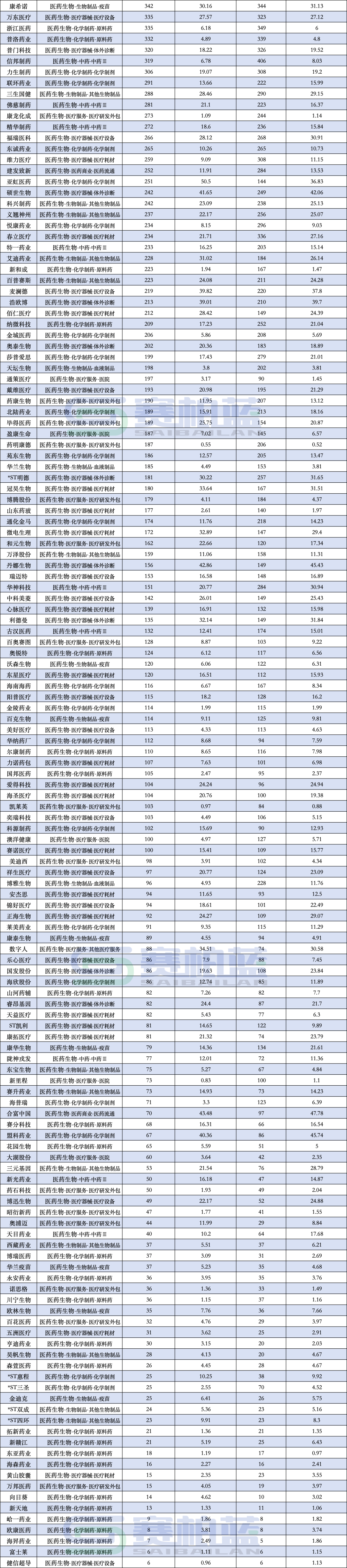 附:A股252家医药企业销售人员数量(数据来源:同花顺问财)