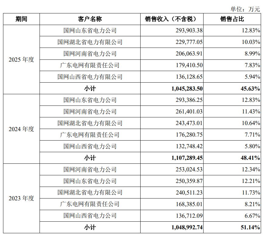 客户方面,华润新能源前五大客户销售共计占比分别为51.14%、48.41%、45.63%。